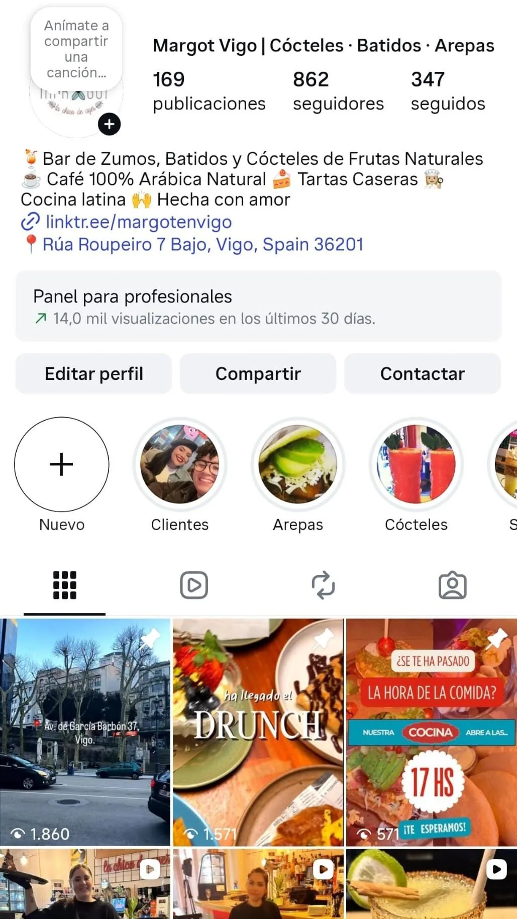 Creación de contenido y estrategia de redes sociales para negocio local en Vigo.